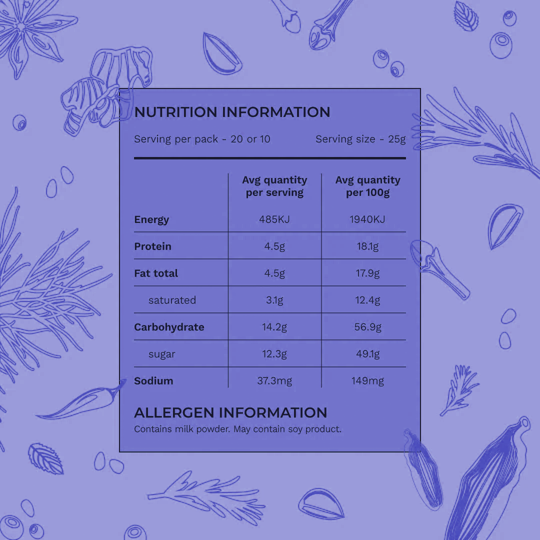 Experience the familiar warmth of traditional Indian chai. Our Classic Chai Premix delivers a smooth, comforting and bold cup that tastes just like the chai you grew up with. No spices, no fuss, just clean, authentic flavour in every sip.