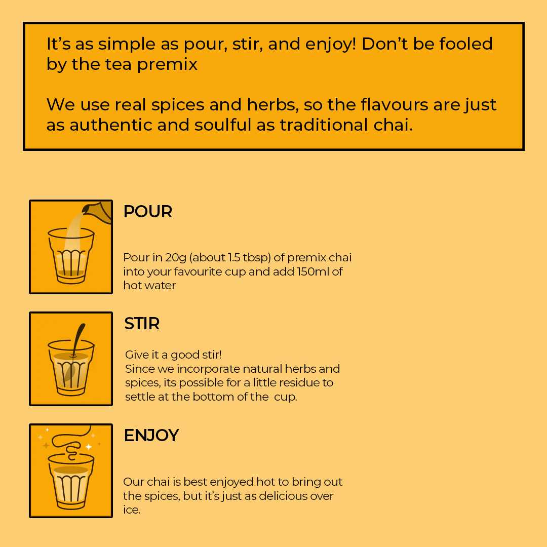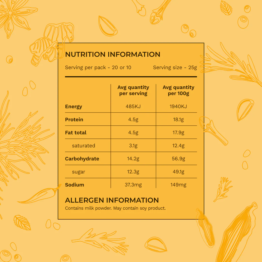 Wake up your senses with a chai that carries a punch. Our Ginger Chai Premix blends the warmth of traditional Indian chai with the fiery kick of real ginger, giving you a cup that’s bold, energising, and incredibly satisfying.